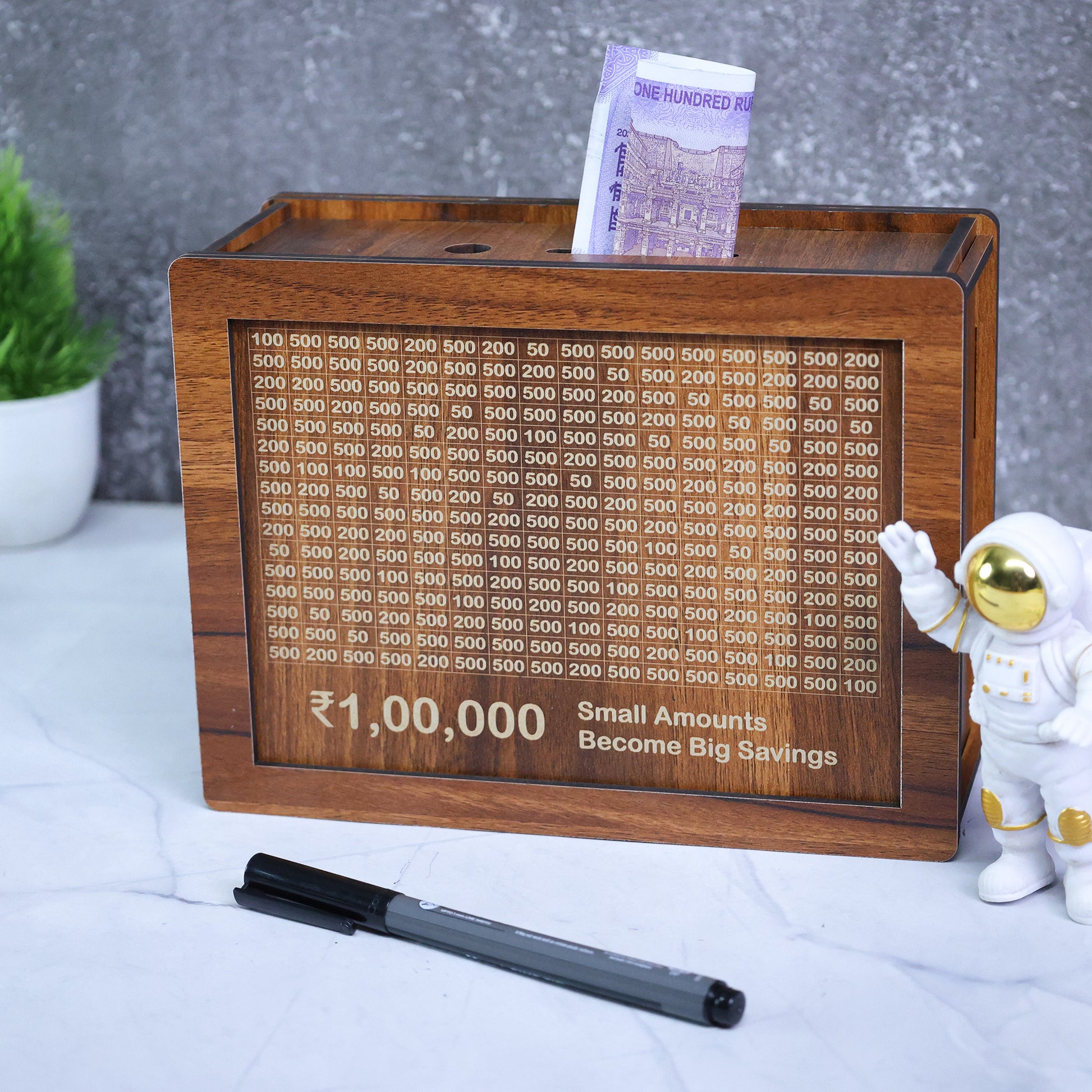 Introducing the ā¹1,00,000 Savings Box šŖµāyour perfect companion to turn small amounts into big savings! Designed to motivate and organize your financial goals, this premium wooden MDF box is both stylish and functional.